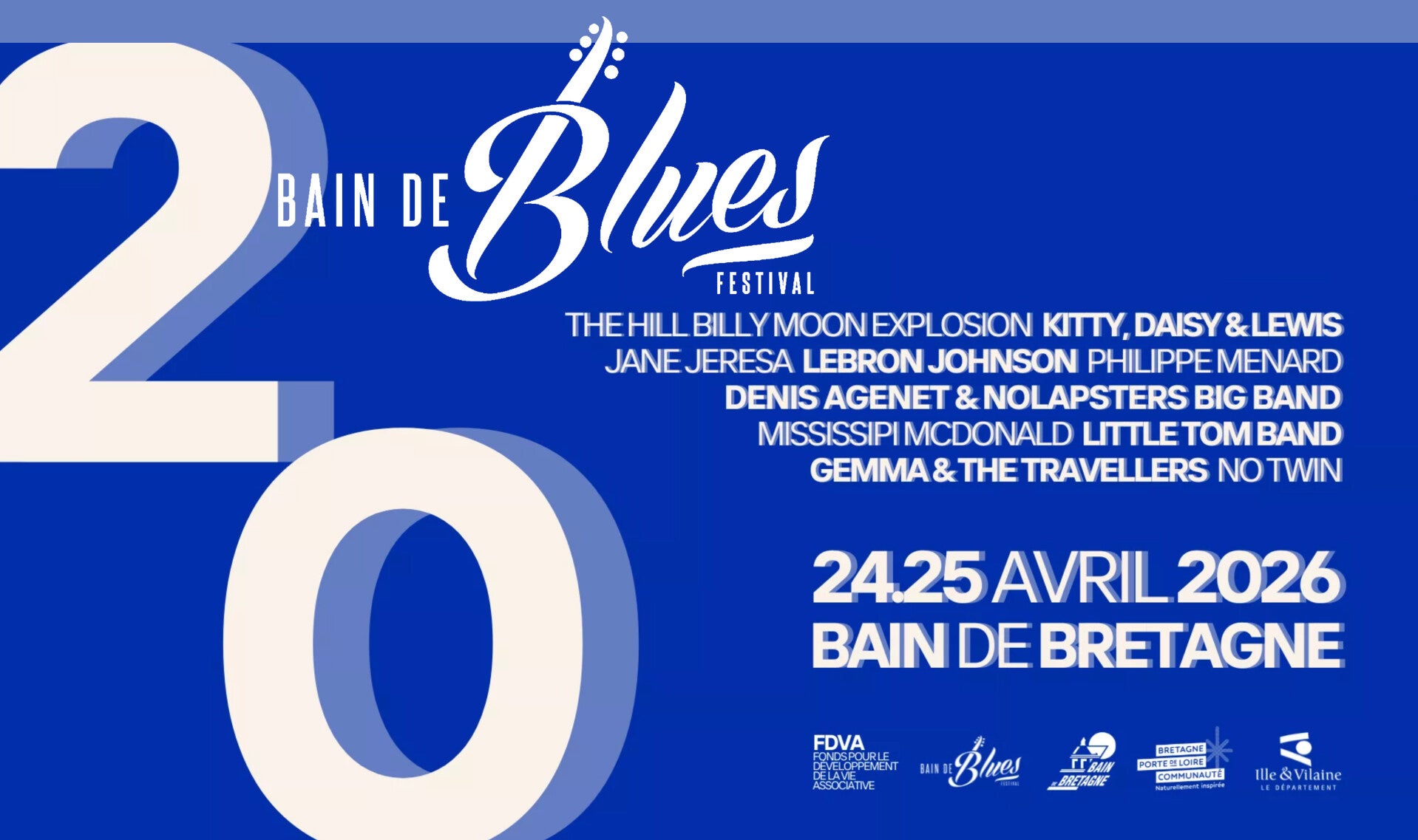 | Vendredi 24 avril : | BAIN DE BRETAGNE (35) : Festival BAIN DE BLUES fête ses 20 ans |
